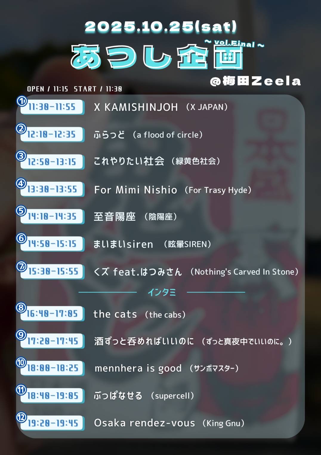 - For Mimi Nishio / X KAMISHINJOH / これやりたい社会 / 至音陽座 / ふらっど / くズ feat. はつみさん / まいまいsiren / the cats / 酒ずっと呑めればいいのに / mennhera is good / ぶっぱなせる / Osaka rendez-vous