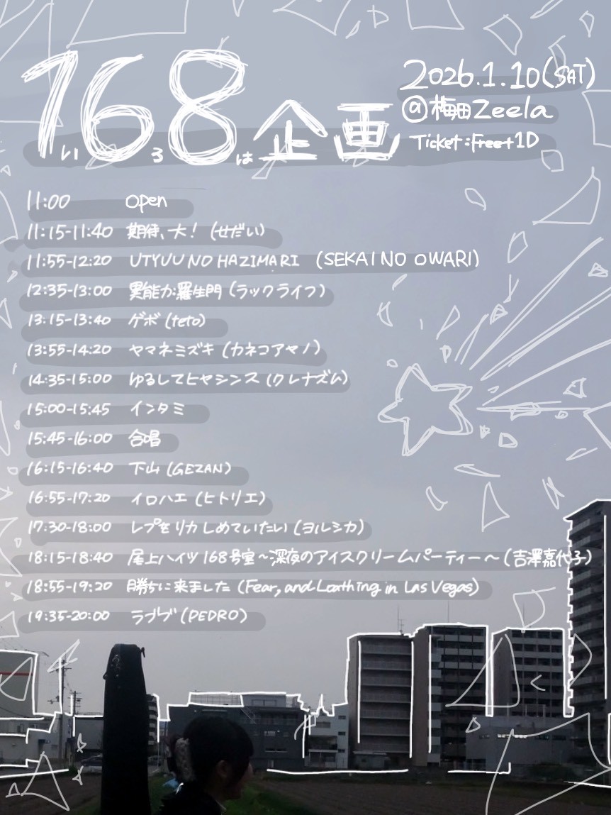 - 期待、大! / UTYUU NO HAZIMARI / 異能力:羅生門 / ゲボ / ヤマネミズキ / ゆるしてヒヤシンス / 下山 / イロハエ / レプをリカしめていたい / 尾上ハイツ168号室〜深夜のアイスクリームパーティ〜 / 勝ちに来ました / ラブブ