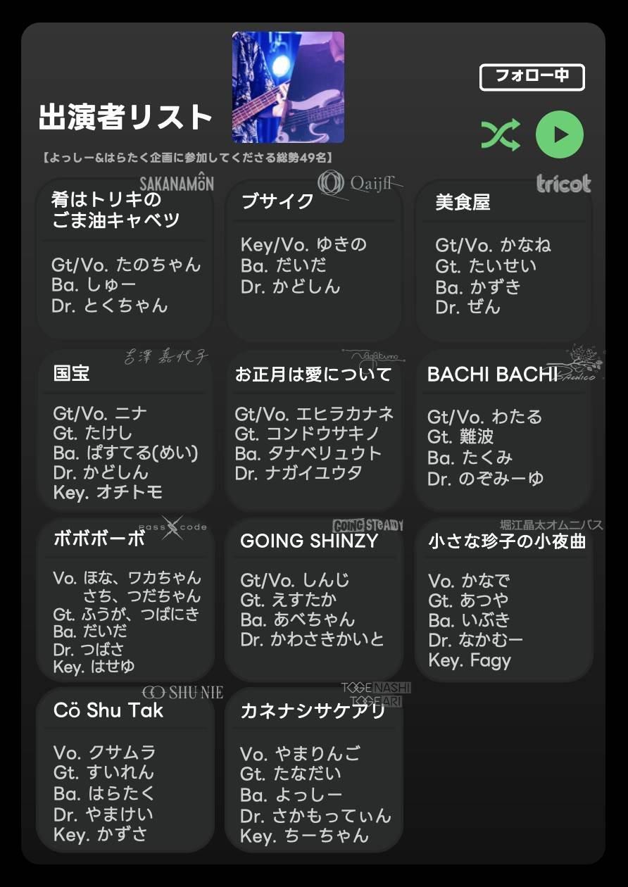 梅田 Zeela(ジーラ) スケジュール 2026.1.03(Sat) よっしー × はらたく企画 [ACT] 肴はトリキのごま油キャベツ / ブサイク / 美食屋 / 国宝 / お正月は愛について / BACHI BACHI / ボボボーボ / GOING SHINZY / 小さな珍子の小夜曲 / Cö Shu Tak / カネナシサケアリ [OPEN/START] 11:15/11:30 [料金] FREE (1D代別) (問)梅田Zeela 06-6316-1199 http://osaka-zeela.jp