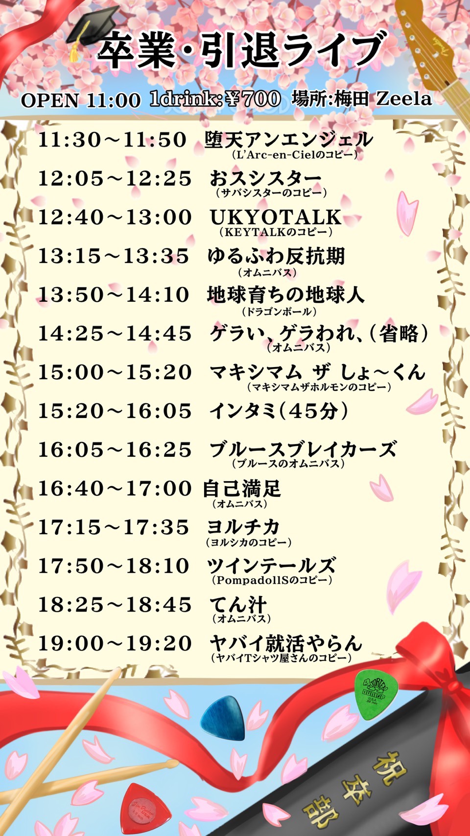 - 堕天アンエンジェン / おスシスター / 自己満足 / ゆるふわ反抗期 / 地球育ちの地球人 / ゲラい、ゲラわれ、ゲラ、ゲラれどたばたばくしんマリトッツォクリオネットよわよわなう / マキシマムTHEしょうくん / ブルースブレイカーズ / UKYOTALK / ヨルチカ / ツインテールズ / てん汁 / ヤバイ就活やらん