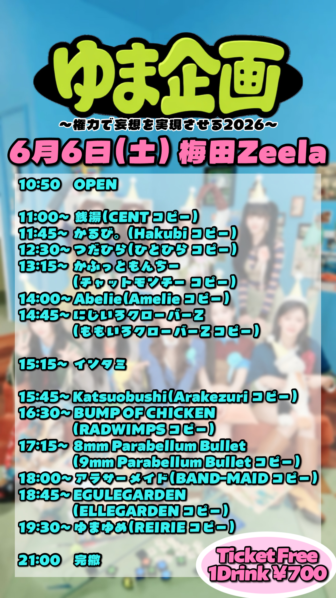 - ADV/DOOR ¥FREE/¥FREE(別途1drink代¥700必要)