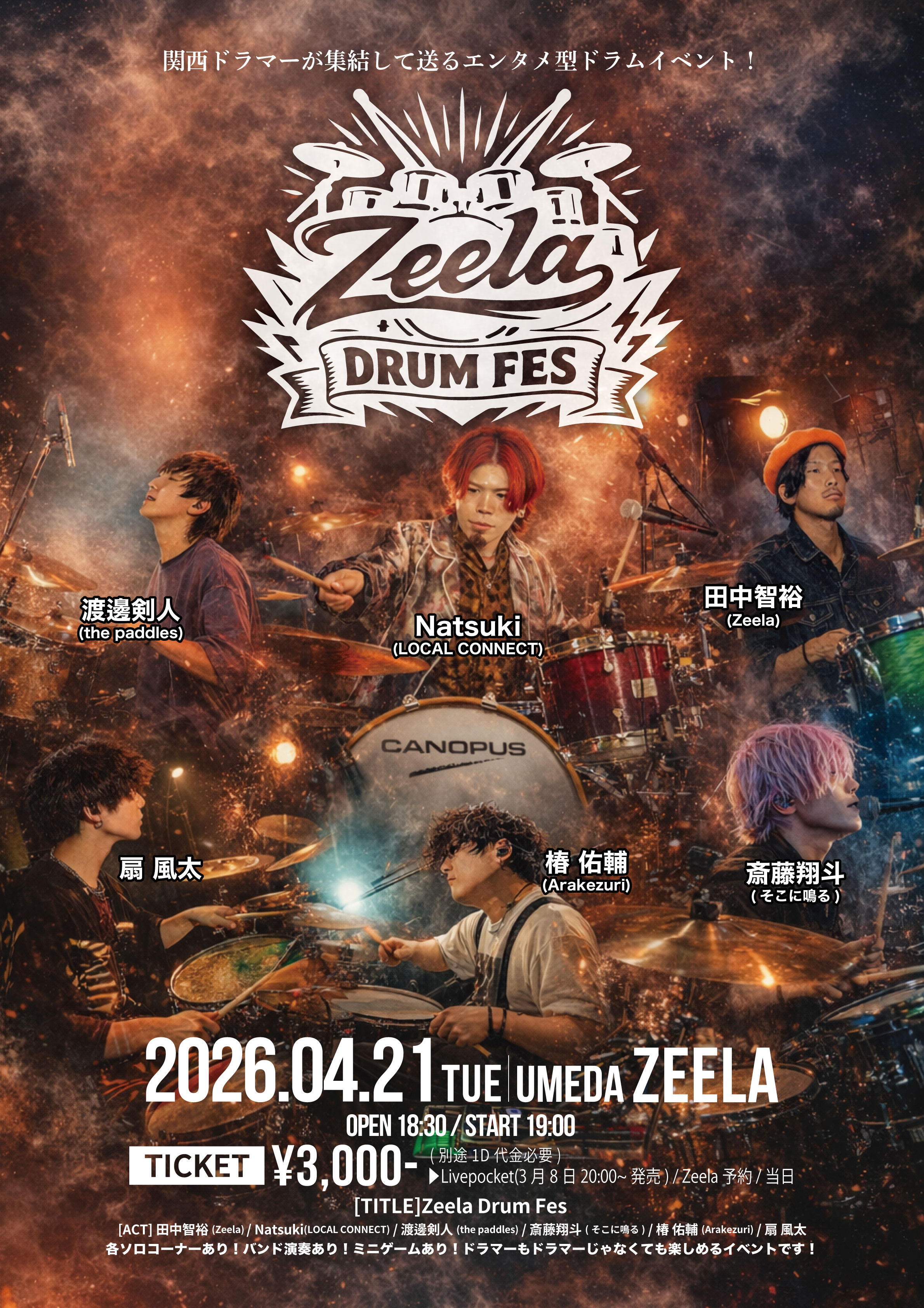- 田中智裕(Zeela) / Natsuki(LOCAL CONNECT) / 渡邊剣人(the paddles) / 椿 佑輔(Arakezuri) / 斎藤翔斗(そこに鳴る) / 扇 風太