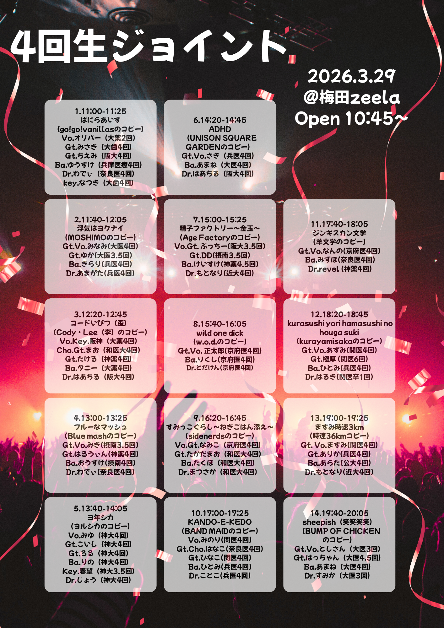 - ばにらあいす / 浮気はヨクナイ / コードいびつ(歪)/ ブルーなマッシュ / ヨ年シカ / ADHD / wild one dick / すみっこぐらし〜ねぎごはん添え〜 / KANDO-E-KEDO / ジンギスカン文学 / 精子ファクトリー〜金玉〜 / kurasushi yori hamasushi no houga suki / ますみ時速3km / sheepish(笑笑笑笑)