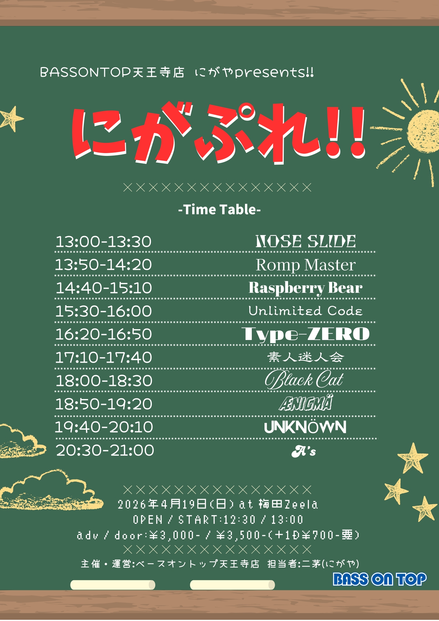 BASS ON TOP 天王寺店 にがや presents. 【にがぷれ !! 】