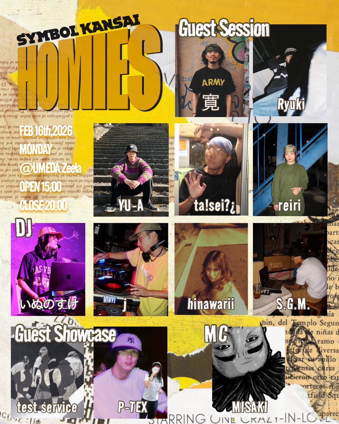 - <Guest Showcase> P-TEX / test service <Guest Session> hiro / Ryuki / reiri / ta!sei?¿ / YU-A / <DJ> いぬのすけ / j / hinawarii / S.G.M. <MC> MISAKI