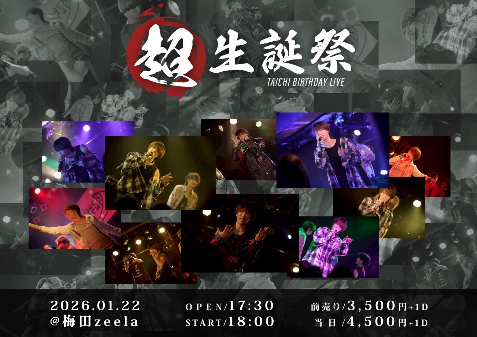 梅田 Zeela(ジーラ) スケジュール 2026.1.22(Thu) 『超生誕祭』 -TAICHI BIRTHDAY LIVE- [ACT] VELLE.J [OPEN/START] 17:30/18:00 [料金] ADV/DOOR ¥3,500/¥4,500 ticket: https://livepocket.jp/e/1a9_7 (問)梅田Zeela 06-6316-1199 http://osaka-zeela.jp