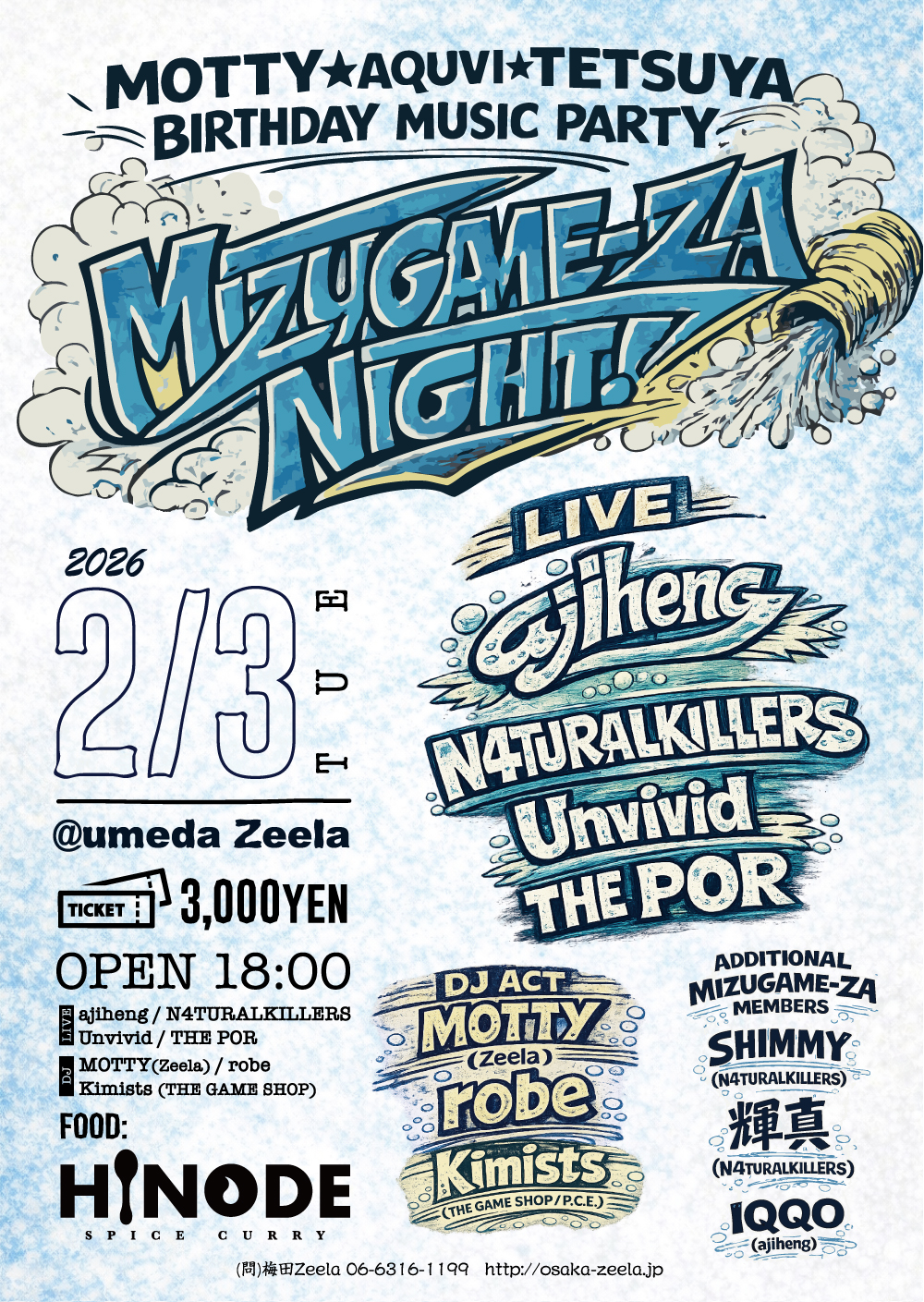 - [LIVE] ajiheng / N4TURALKILLERS / Unvivid / THE POR // [DJ] MOTTY(Zeela) / robe / Kimists (THE GAME SHOP/P.C.E.) // [FOOD] HINODE SPICE CURRY