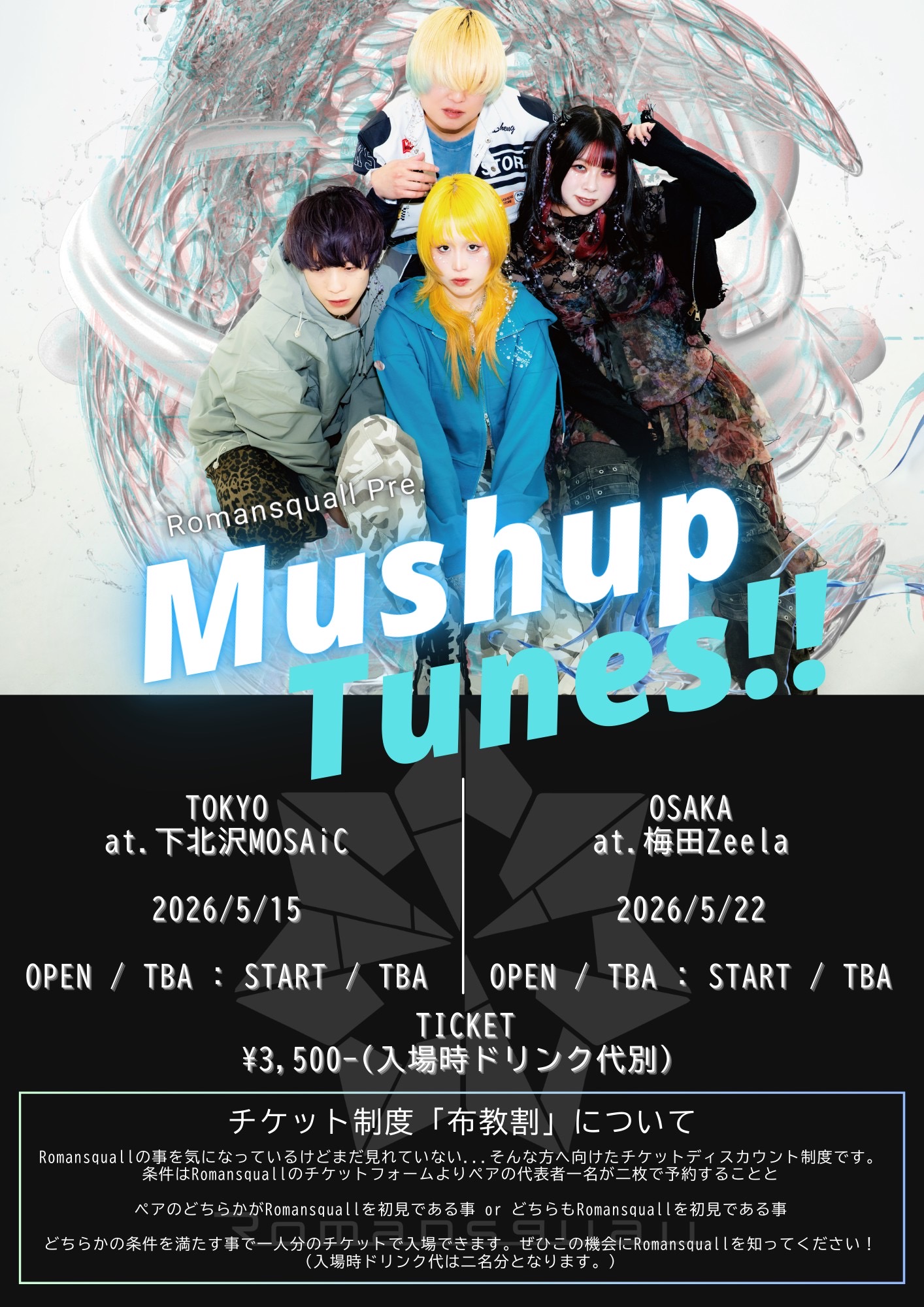 梅田 Zeela(ジーラ) スケジュール 2026.5.22(Fri) Romansquall Pre. Mushup Tunes!! [ACT] Romansquall / and more... [OPEN/START] TBA/TBA [料金] ADV/DOOR ¥3500/¥--- (問)梅田Zeela 06-6316-1199 http://osaka-zeela.jp
