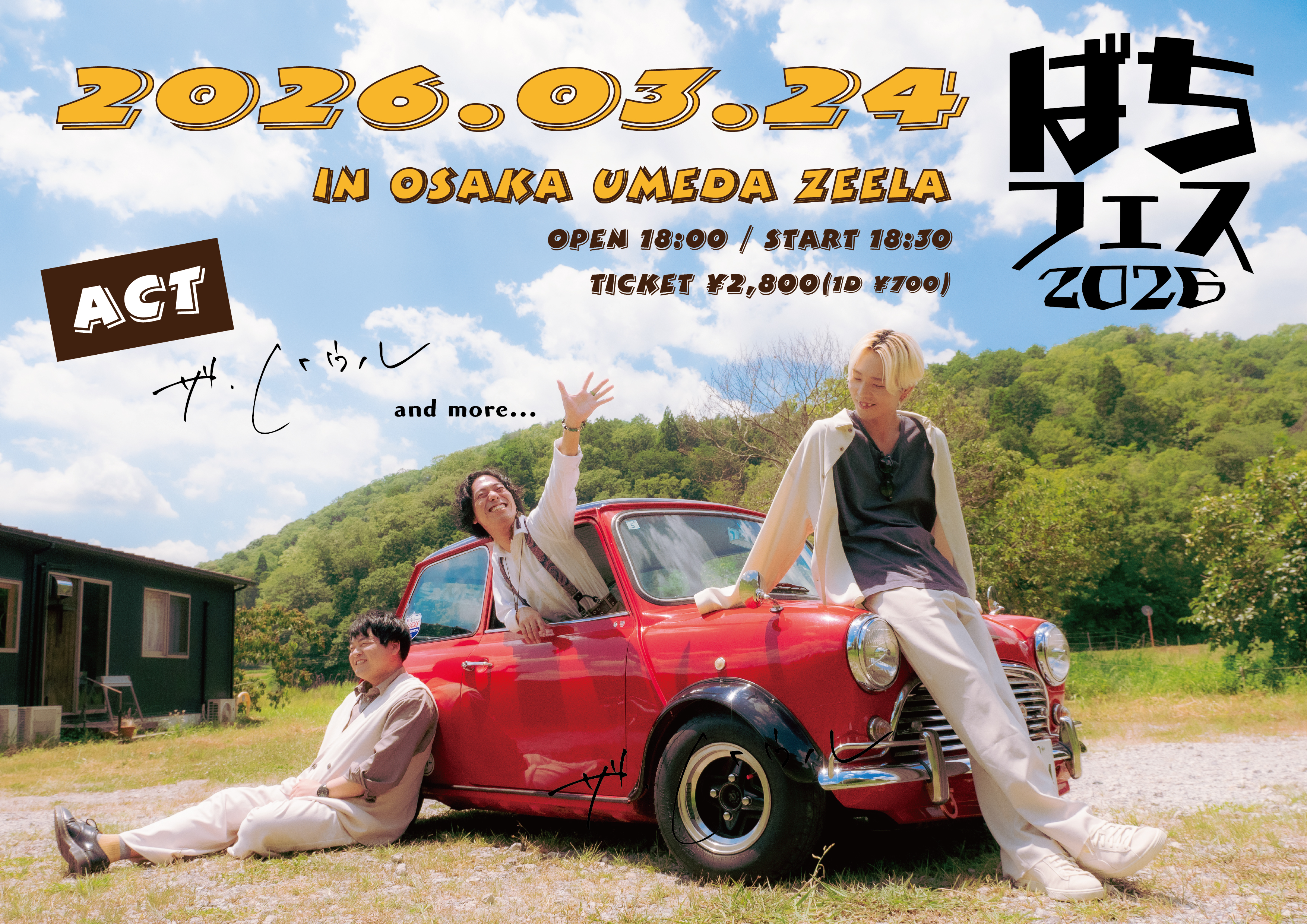 梅田 Zeela(ジーラ) スケジュール 2026.3.24(Tue) ザ・ハウル pre.ばちフェス2026 [ACT] ザ・ハウル / and more... [OPEN/START] 18:00/18:30 [料金] ADV/DOOR ¥2700/¥--- (問)梅田Zeela 06-6316-1199 http://osaka-zeela.jp