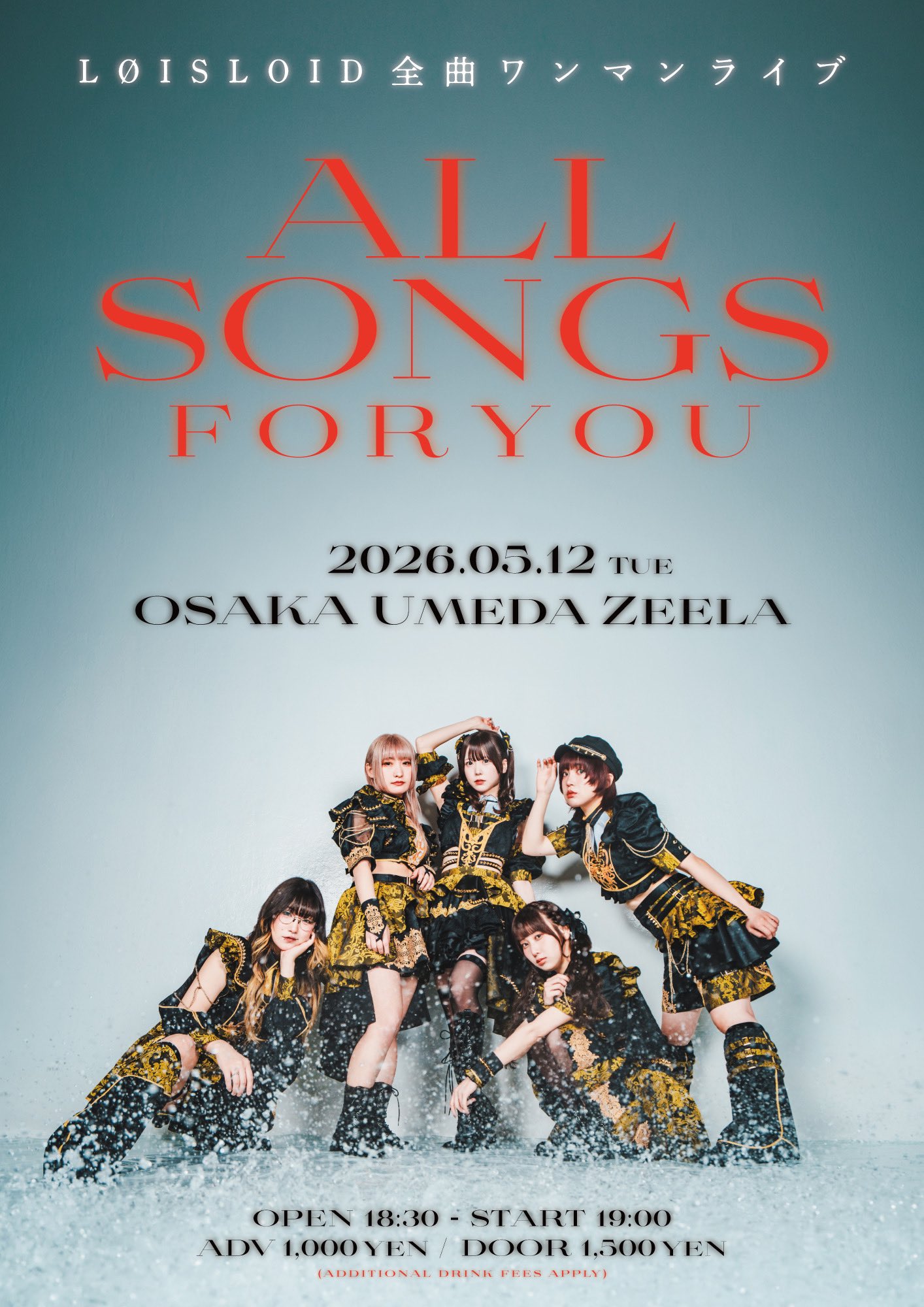 梅田 Zeela(ジーラ) スケジュール 2026.5.12(Tue) LØISLOID全曲ワンマンライブ「ALL SONGS FOR YOU」 [ACT] LØISLOID [OPEN/START] 18:30/19:00 [料金] ADV/DOOR ¥1000/¥1500 チケットのお求めはこちら https://livepocket.jp/e/lpy8e (問)梅田Zeela 06-6316-1199 http://osaka-zeela.jp